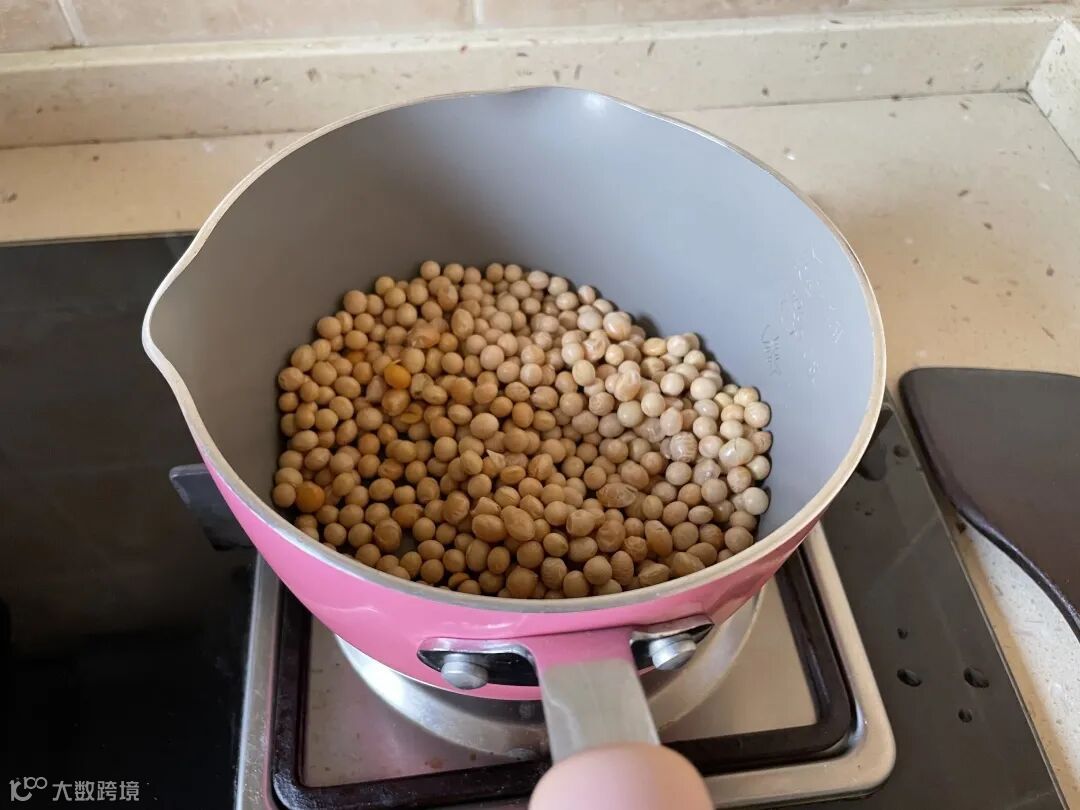 制作黄豆粉。首先,取适量的黄豆将其洗净,在平底锅中用中小火不停翻炒,直至散发出浓浓的黄豆香,黄豆的表面微微裂开且颜色变深。将炒好的黄豆晾凉片刻,可放些许糖,再放入破壁机中打磨成细粉,将其装入密闭的罐子。