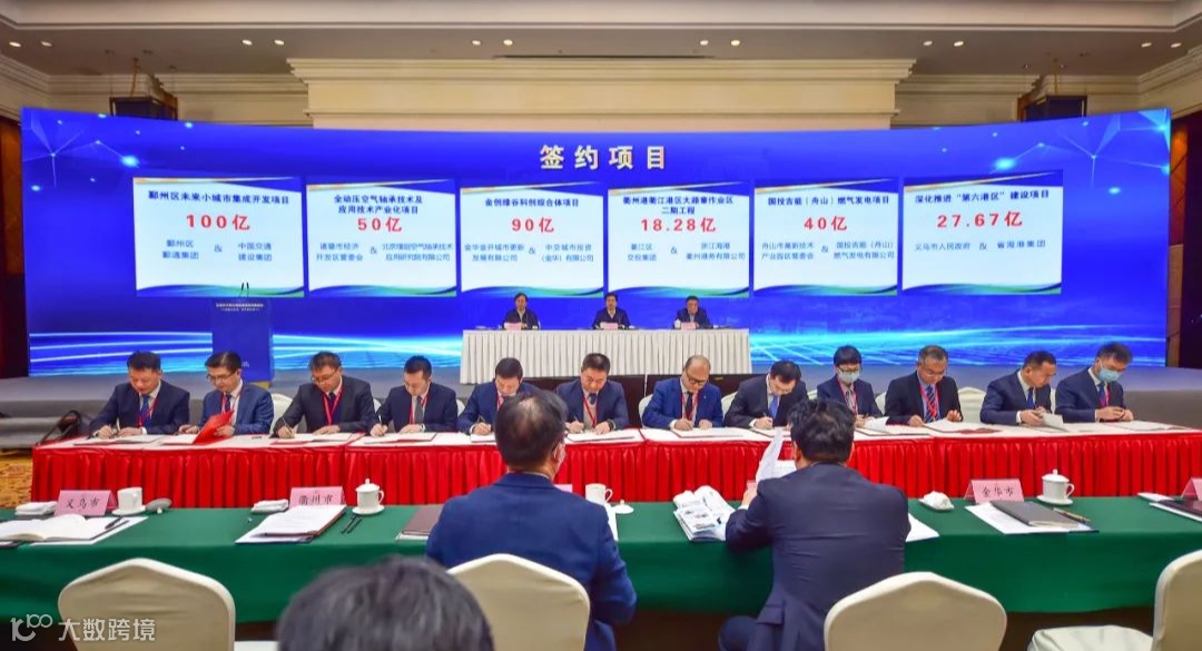 会上,浙江省义甬舟办发布了《支持义甬舟开放大通道高质量发展的政策举措》和沿线“5+1”市义甬舟建设行动方案,并举行了项目签约仪式,共安排场内外签约项目81项,总投资约3475亿元;会上签约项目11项,签约总额约451亿元。期间,集团副总经理、党委委员蒋一鹏代表集团与义乌市人民政府签署合作协议,深化推进“第六港区”建设。浙江海港衢州港务有限公司与衢江区交投集团签署协议,共同开发建设衢州港衢江港区大路章作业区二期工程。