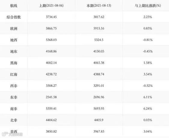 宁波出口集装箱最新运价指数。来源:宁波航交所