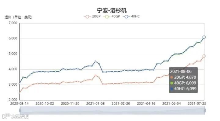 而据8月10日全球集装箱货运指数显示,中国、东南亚至北美东海岸的海运价格,首次超过了每标箱2万美元。要知道8月2日,这个数字还是16000美元。