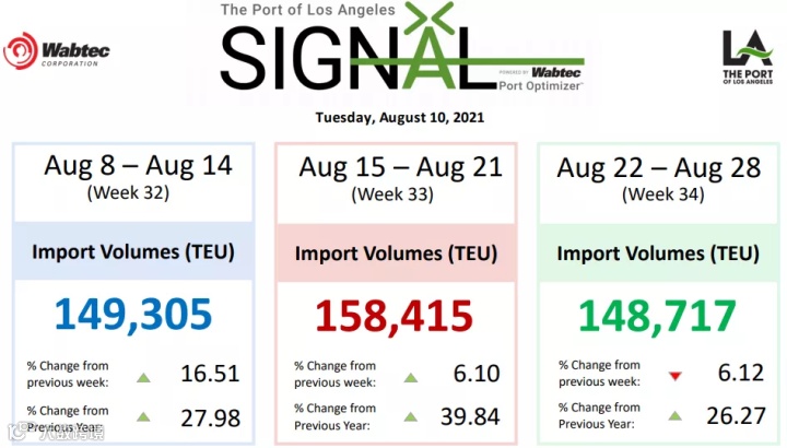 洛杉矶港signal最新数据:南加州锚地船舶平均靠泊等待时间5.8天。
