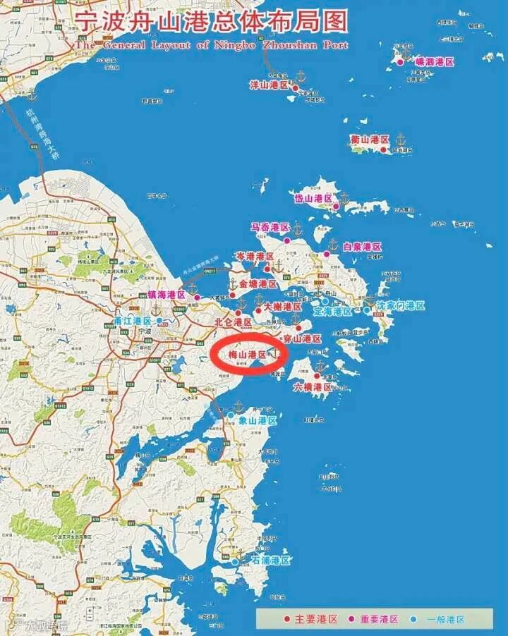 宁波舟山港货物吞吐量世界第一、集装箱吞吐量世界第三,而梅山港区是其六大集装箱港区之一。参照今年1至7月份的生产数据,梅山港区完成集装箱吞吐量410万标准箱,占到宁波舟山港1868.4万标准箱总量的21.9%。梅山港区之于全港,重要性不言而喻。