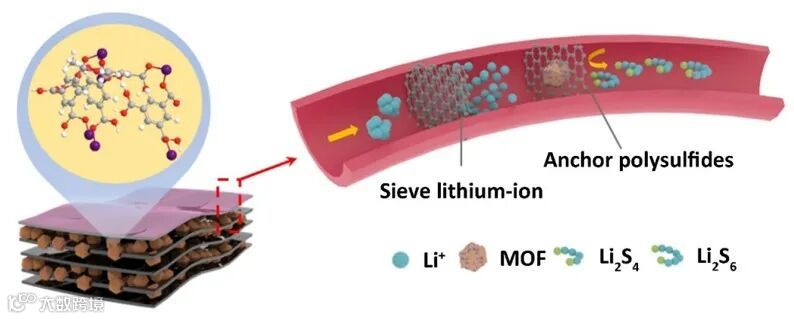 基于多功能金属有机框架(MOF)的隔膜结构,旨在大幅提升锂硫电池循环寿命和安全性。