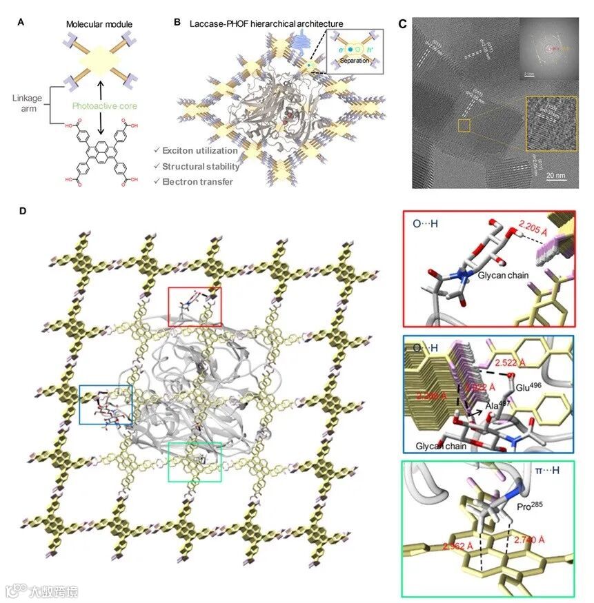 漆酶通过仿生封装嵌入至多孔的光活性氢键有机框架(PHOF)