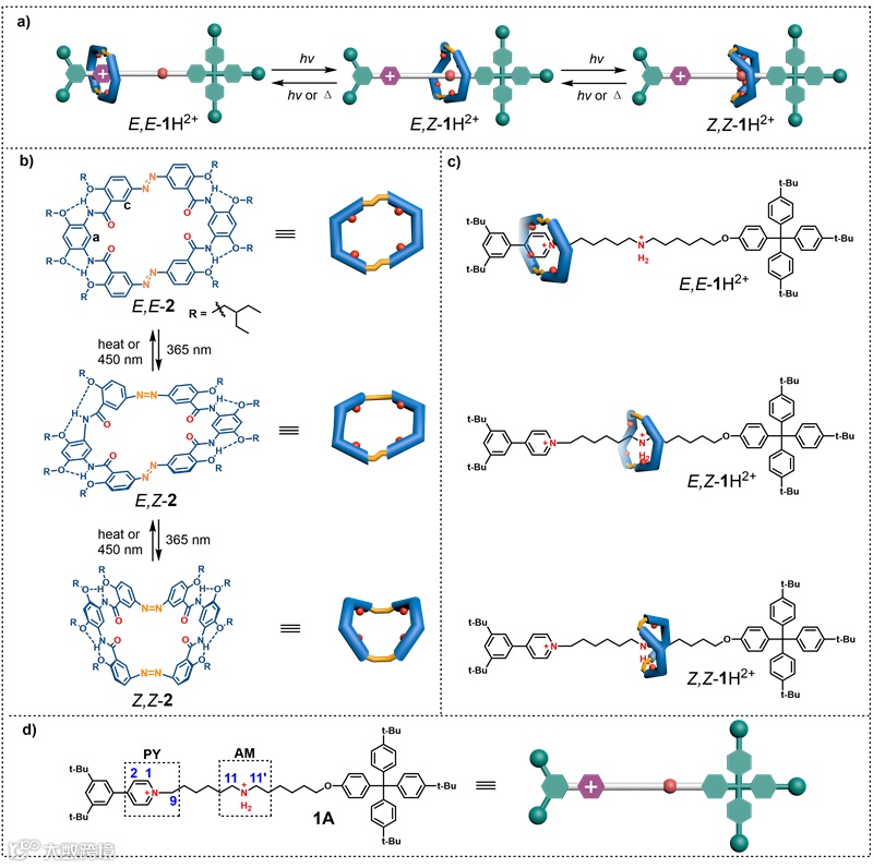图2. 基于偶氮芳酰胺大环的光驱动自动分子机器的设计策略。