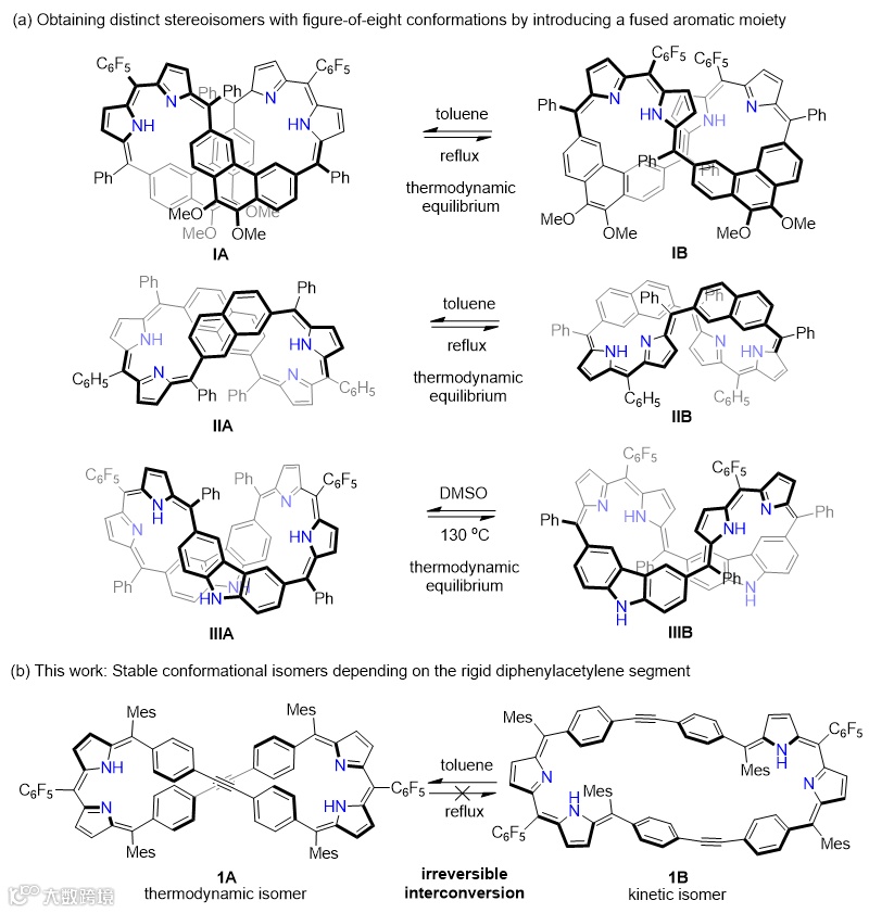 图1. 具有稳定构象异构体的扩展卟啉及其转化
