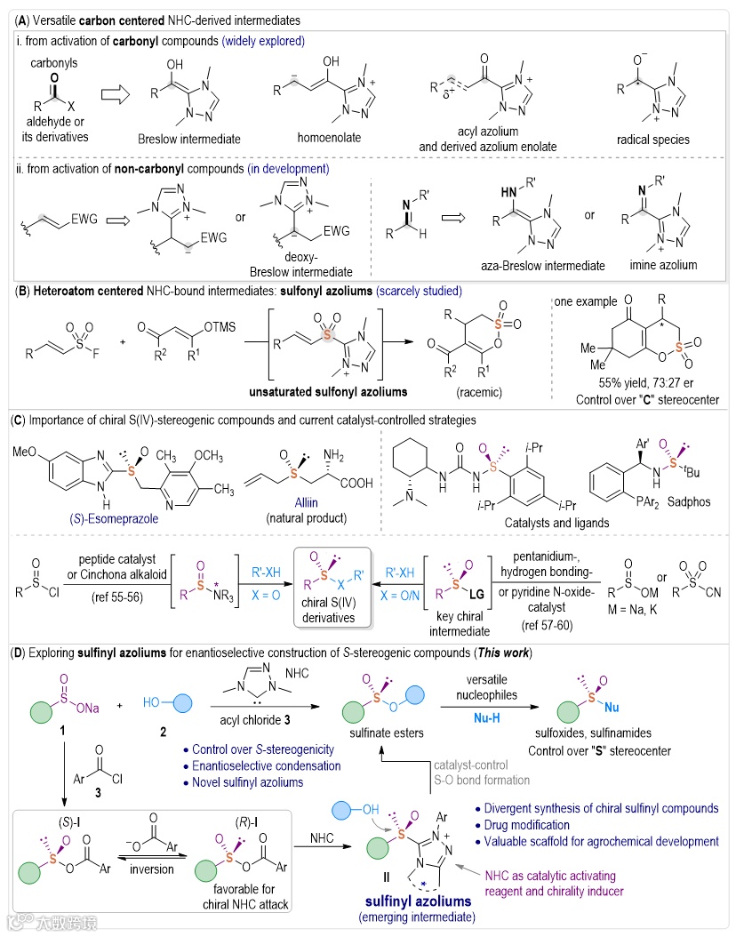 “非碳”硫杂原子为中心的亚磺酰基唑鎓中间体,成功实现了一种S(IV)中心手性化合物的催化调控新方法