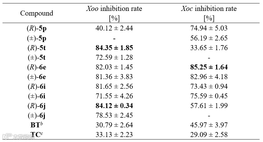 外消旋化合物的抑制活性普遍略有降低。相关发现对于新型杀菌活性先导结构发掘及后续绿色农药创制具有重要意义。