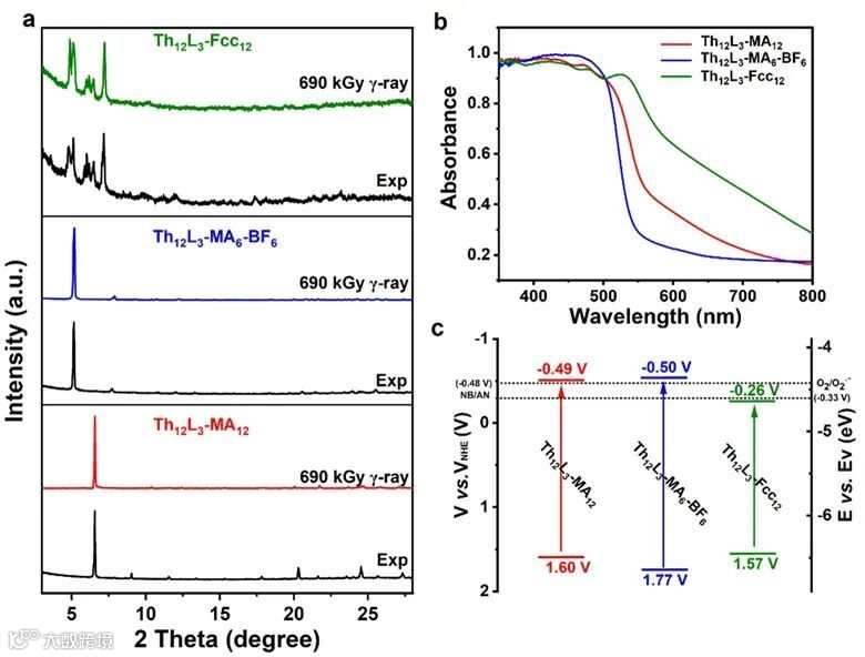 导读:兰亚乾团队利用“双配体工程”成功构筑了三个具有辐射稳定性的高核钍簇,这些钍簇的分子结构和组成在690 kGy γ射线(剂量率为15.5 kGy h-1)照射后没有显著变化。