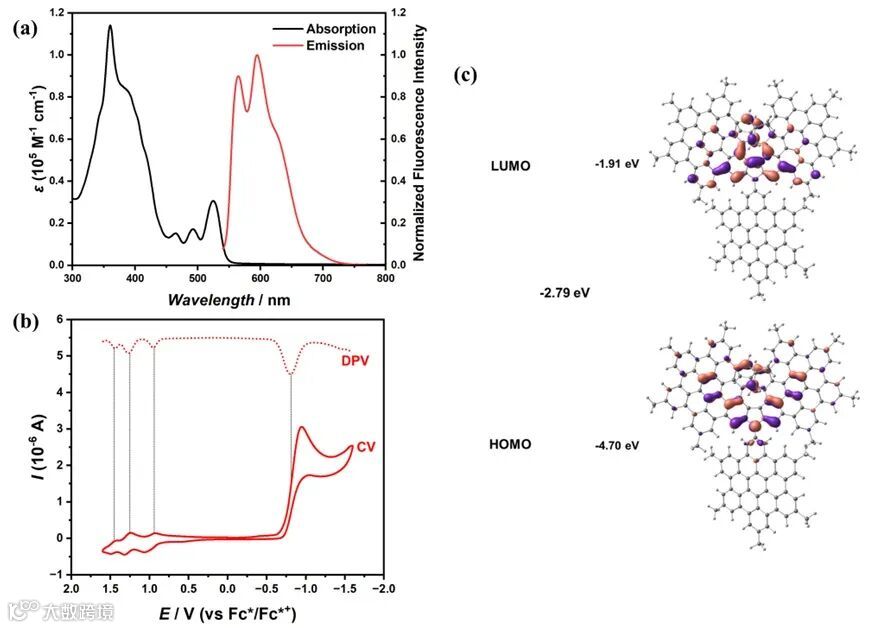 的紫外吸收和荧光发射光谱均表现出显著的红移,并易于形成激基复合物而导致荧光最大发射峰位于红光区628 nm处。这一特性展示了分子在光电领域的应用潜力。这一机制通过实验和DFT计算得到了进一步验证。