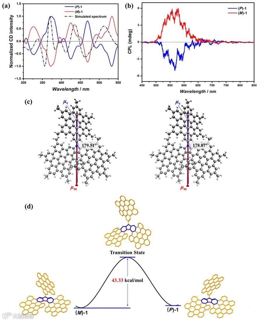 的翻转势垒高达43.33 kcal/mol,进一步说明其手性结构的高度稳定性。