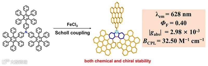 通过扩展取代法成功合成了一种以咔唑为核心、结合HBC(六苯并蒄)单元的氮杂螺烯分子(分子1),并深入研究了其稳定性及与手性相关的光学性质。