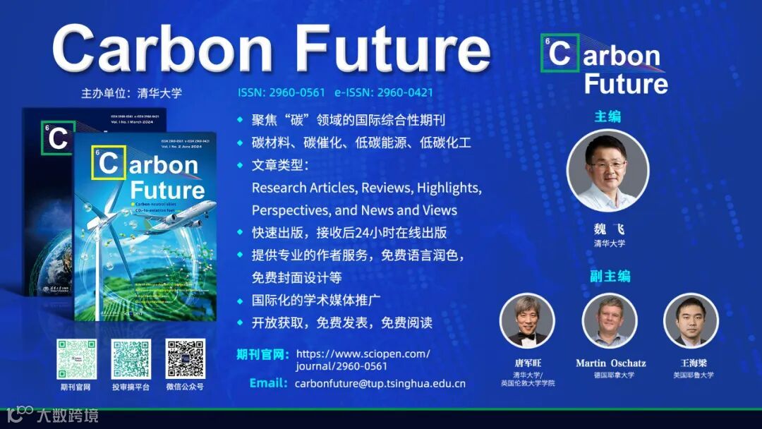 Carbon Future (《碳未来》)是由清华大学主办的国际英文综合性期刊,聚焦碳领域基础和应用研究,包括碳材料、催化、低碳能源、低碳化工等,致力于发表碳领域前沿进展,打造多学科融合的国际学术交流平台。该刊2024年创刊,由清华大学魏飞教授担任主编,在清华大学出版社SciOpen平台出版,全文开放获取。