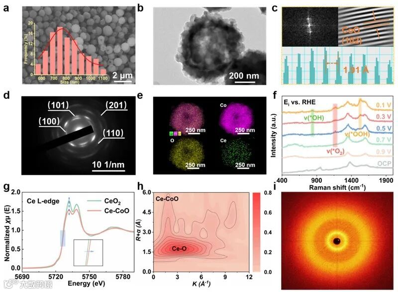 此外,该科研团队还成功研制出了一种中空球状Ce-CoO阴极催化剂。通过原位Raman光谱分析,发现催化剂展现出了出色的