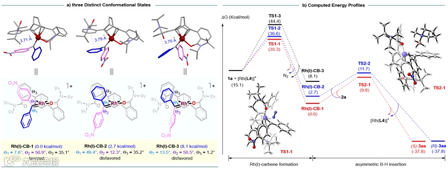 导读:南方科技大学徐明华教授通过设计构象限制的新型阳离子铑/手性双烯催化剂,进一步拓展了一价铑/手性双烯催化体系,利用二芳基卡宾中两个取代芳基的电性差异,成功实现了二芳基铑(I)卡宾对B-H和O-H键的不对