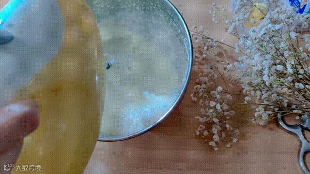 制作过程:1.蛋黄加入20克糖和几滴柠檬汁打发至颜色变浅备用。