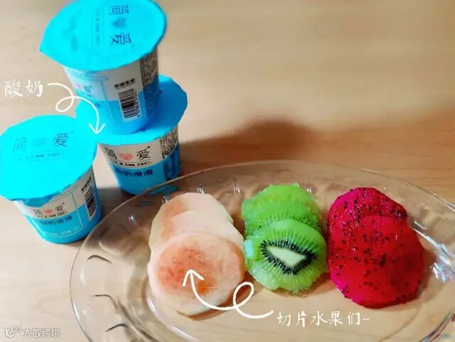 准备材料:水果、酸奶或牛奶、糖(根据自己喜好适当增添)。