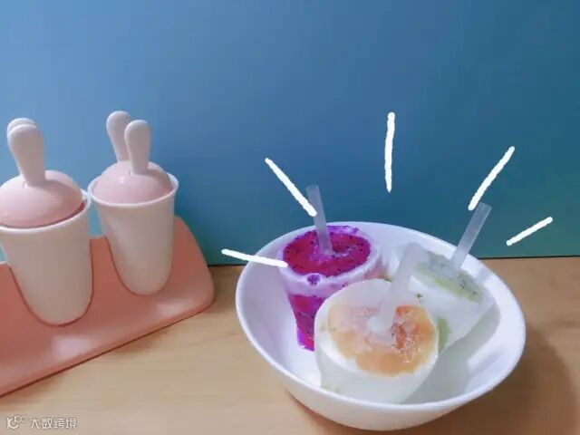 制作过程:将各式水果、酸奶(牛奶)按照3:2的比例进行混合搅打均匀,随后倒入模具进行冷冻即可。