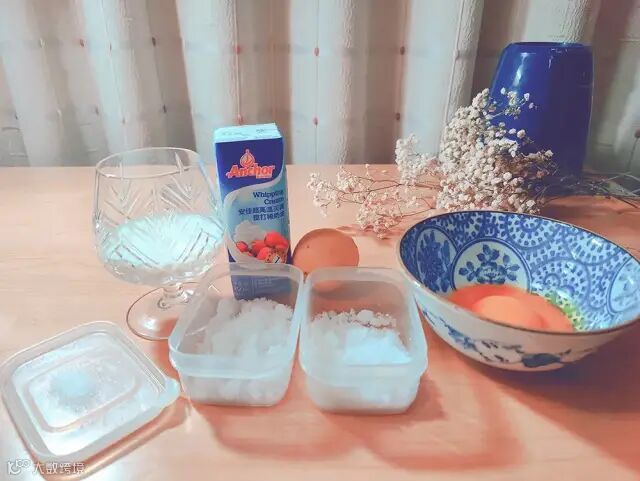 食材准备:淡奶油200克,蛋黄2个,糖20克*2,牛奶50克,盐0.5克,柠檬汁。