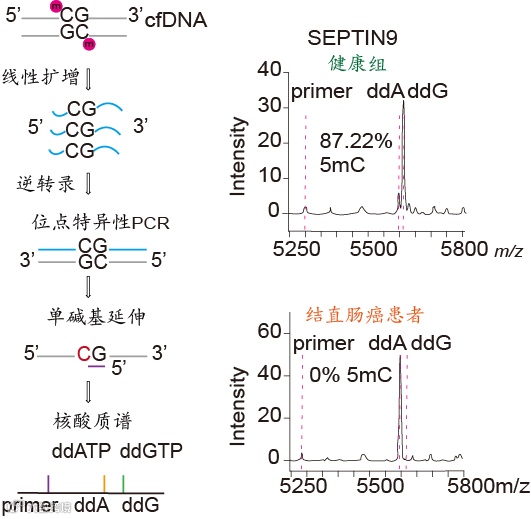 结合线性扩增与单碱基定量核酸质谱的新型技术(LAMP-MS)。该技术能够对低至1 ng的血浆cfDNA进行无偏倚扩增,实现多个cfDNA甲基化位点的高分辨率可视化检测。