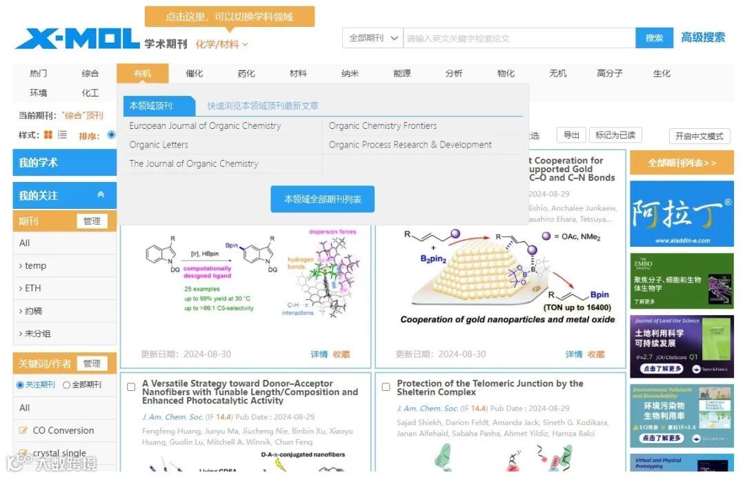 当你关注了一些感兴趣的期刊后,就能在左侧“
