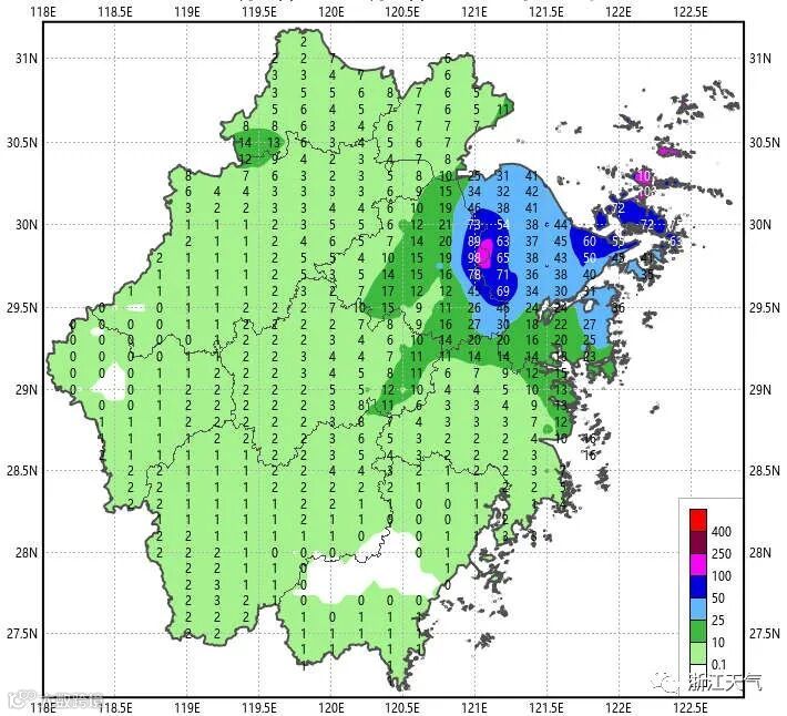 今天明天舟山和宁波等地有中到大雨局部暴雨,其中舟山和四明山区个别大暴雨。14日08时至16日08时累计降雨量舟山、宁波20~40毫米,局部50~80毫米,个别100毫米以上。