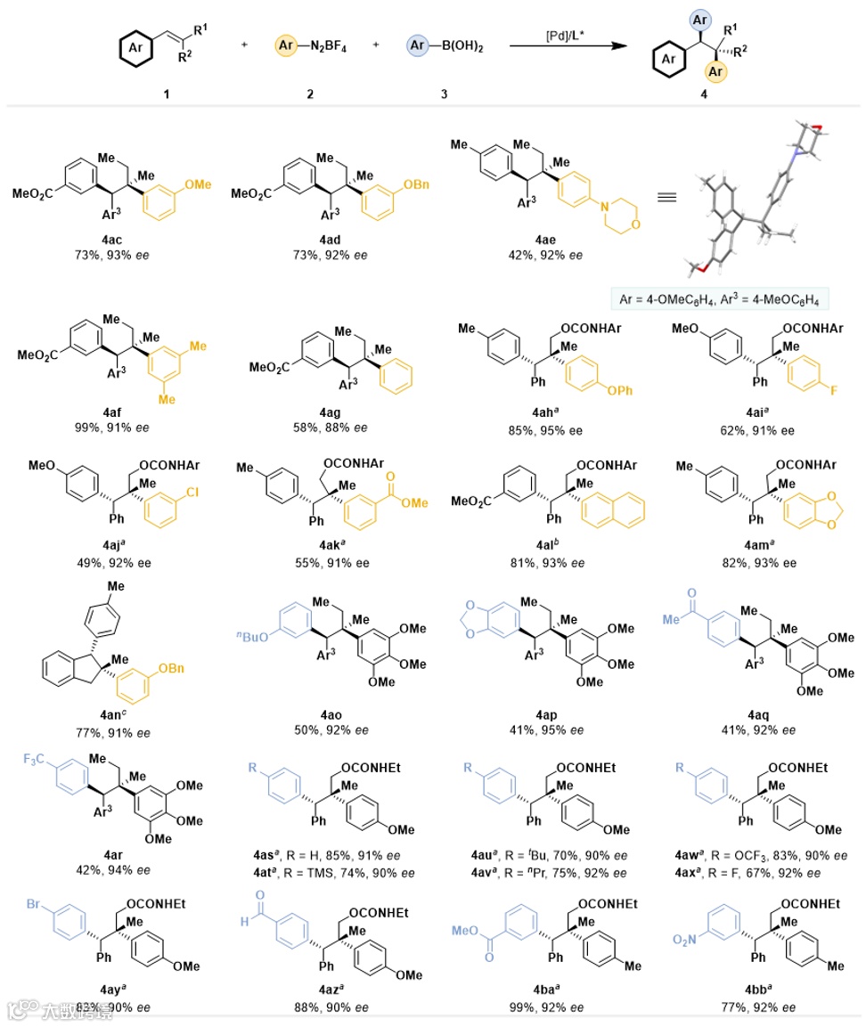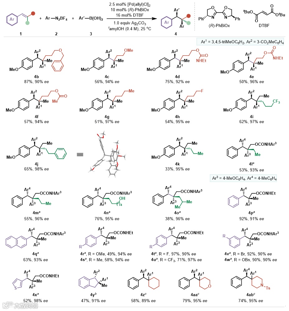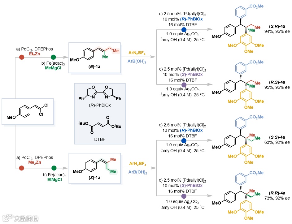 进行三组分不对称交叉偶联反应,能够以94%的分离收率和95% ee获得1,2-双芳基化产物 (