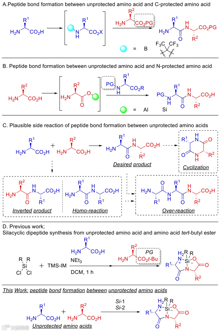 图1. 研究背景及无保护氨基酸多肽合成策略。图片来源:JACS