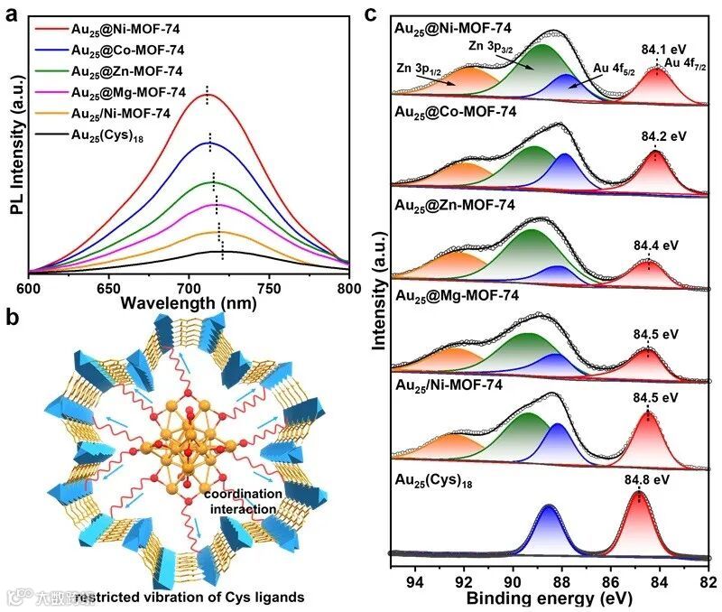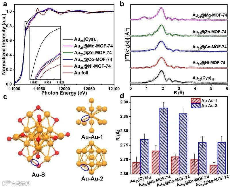 NCs的电子密度以及其核心Au-Au键长可以随着M-MOF-74与