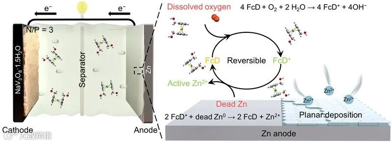 导读:南京理工大学陈涛教授和傅佳骏教授基于可逆的二茂铁/二茂铁阳离子氧化还原反应,提出了一种由溶解氧引发的死锌回收策略。