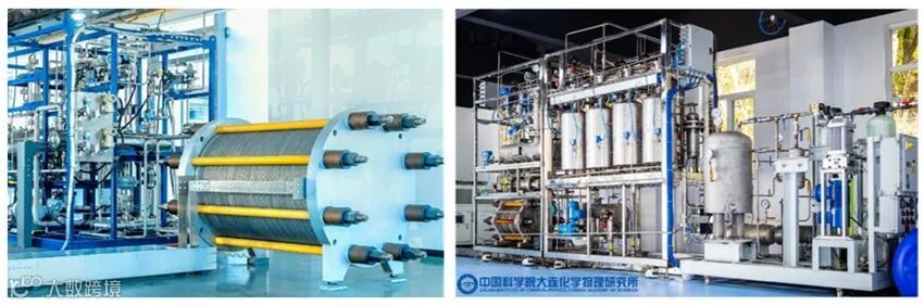 图8. 250千瓦级碱性电解水制氢系统(左);25千瓦级海水制氢联产淡水中试系统(右)。