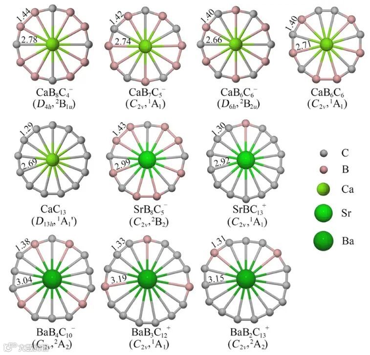 导读:本研究利用了具有双重芳香性的硼碳环,基于 -CBC- 和 -BBC-序列与Ae原子构建了AeBxCyq 体系 (x+y= 12, 13, 14, 15, q=0, ±1),共计486种体系。