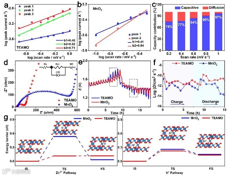 通过一系列的电化学实验以及DFT模拟等方法,作者分析了TEAMO和Mn