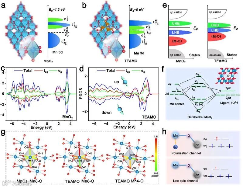 轨道的占据态,进而实现Hubbard能隙的近闭合。制备得到的TEAMO电极材料,具有优异的电化学性能,可以用于ZIBs的正极材料。