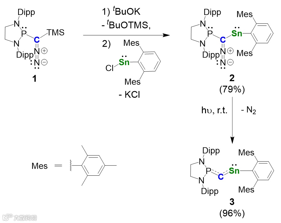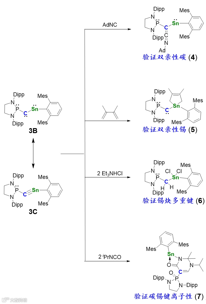 的碳锡多重键特征也在反应中得到验证。在加入两当量的三乙胺盐酸盐时(HCl的温和供体),