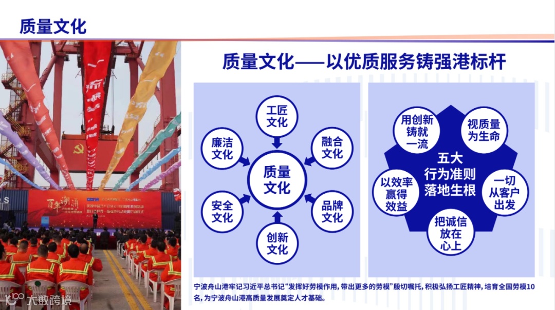 质量是企业生存发展的基本保障,也是企业基业长青的动力之源。集团提出“以优质服务铸强港标杆”的核心理念,充分体现了集团走高质量发展之路的信心和决心。今年以来,嘉兴港务以建设浙江省海河联运中心,推动北翼更高质量发展为目标,深入践行“货走嘉兴港放心、人到嘉兴港舒心”的服务理念,围绕嘉兴港三年能力提升、环保三年行动计划、智慧港建设中远期规划等重点工作,以标准化优装卸工艺、以精细化强货运管理、以智慧化促本质安全、以数字化提生产效率为抓手,持续提升港口整体服务能力,以优质服务促企业高质量发展。下一步,嘉兴港务将继续深入推动集团质量文化的落地践行,发挥好北翼“前哨”的作用,主动担当,开拓进取,为集团打造世界一流强港新标杆贡献北翼力量。