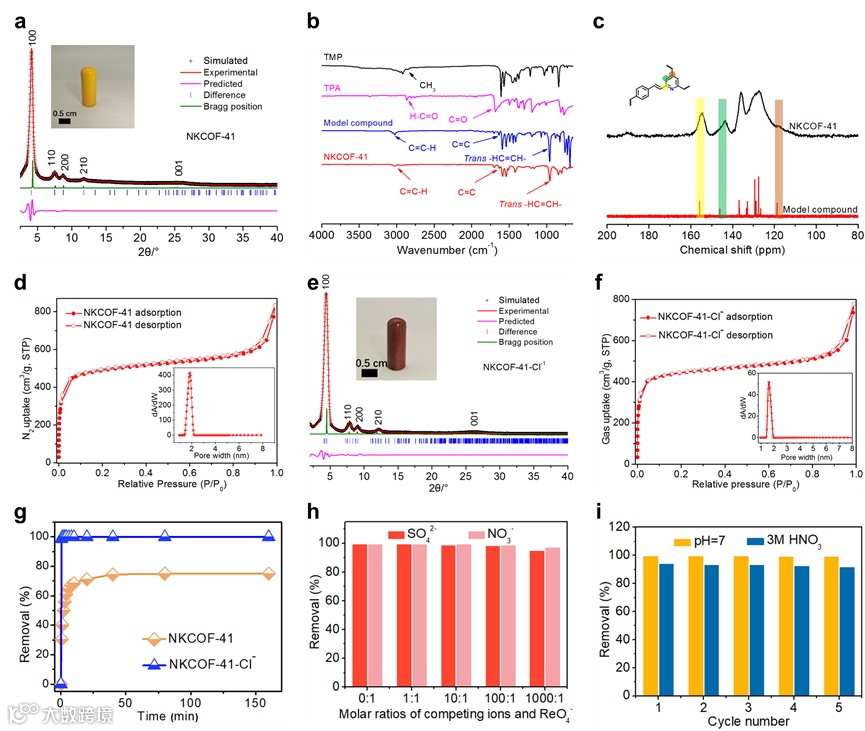 的纯化。此外,通过一锅法和后修饰法制备的廉价的离子型乙烯基COFs(NKCOF-41和NKCOF-41-C