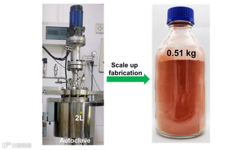 ),可作为离子吸附和交换树脂,实现了含氧酸根阴离子等污染物的高效移除(图4)。得益于无溶剂的绿色合成过程,基于熔融合成法,已经实现一系列COFs材料的低成本公斤级合成(图5)。基于该技术,张振杰教授创立的成果转化公司(耀科新材料)已经建成了全球首个COFs材料的吨级生产线,为COFs材料的规模化应用铺平道路。
