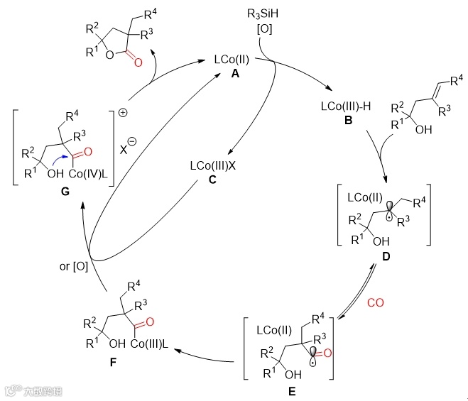 -内酰胺。机理研究表明,该反应在一氧化碳的存在下,经过HAT过程生成了酰基自由基,并且阳离子酰基钴(IV)物种是产物形成的关键中间体。