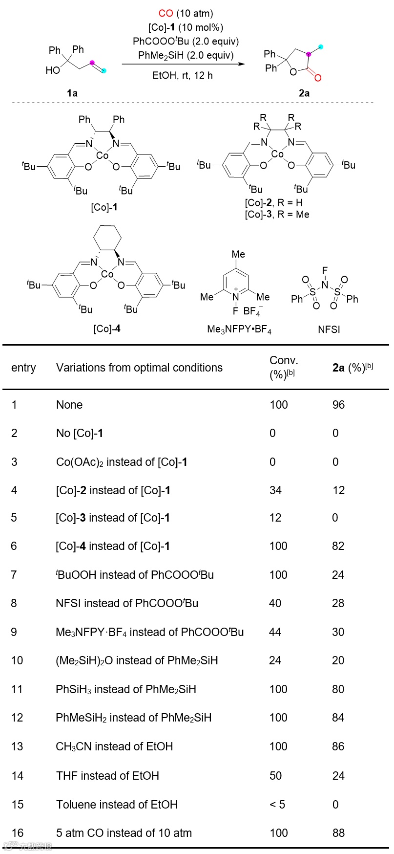 为模板底物,对反应条件进行了探索(图2),最终发现当使用[Co]-