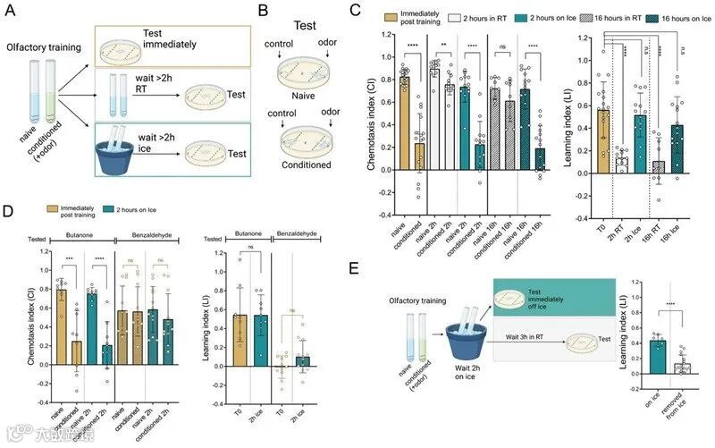 秀丽隐杆线虫被放在冰上时,对特定嗅觉的记忆比常规条件下延长了至少8倍。