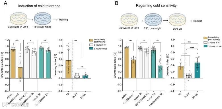 但当线虫逐渐适应低温后再放在冰上时,这种遗忘延迟现象则消失不见。此外,