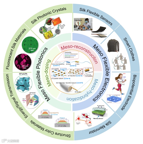 图1. 基于介观功能化蚕丝蛋白的柔性电子/光子器件