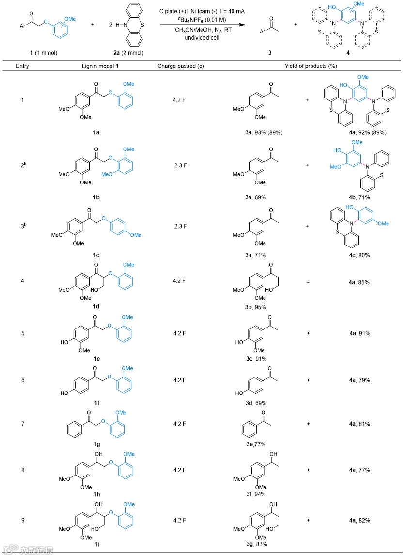 该配对电解策略不仅对各类木质素模型分子的裂解具有较强普适性