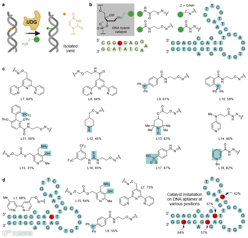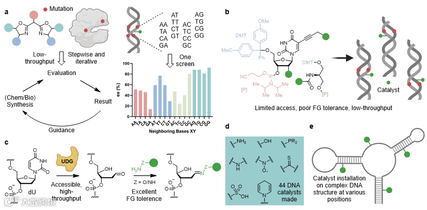 利用DNA切除修复,并将其与生物正交链接相结合,构建了多样化的DNA杂合催化剂阵列,用于DNA不对称催化