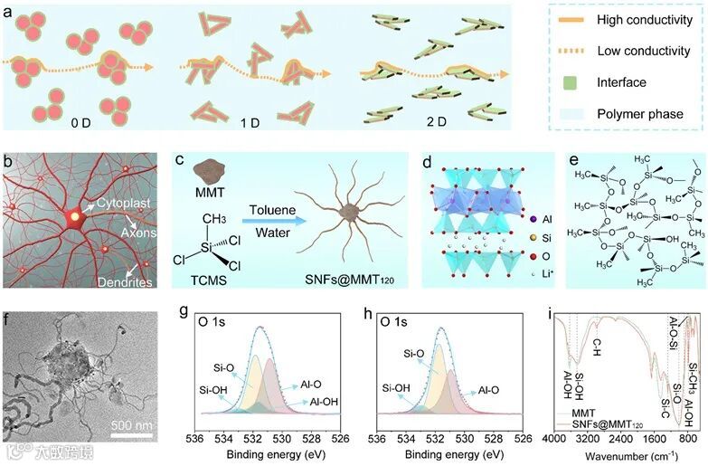 具有类似神经元结构的有机硅纳米线@蒙脱石(SNFs@MMT)超疏水纳米填料,构建了适用于宽温域锂金属电池的PEO基复合固态电解质(PEO/SNFs@MMT)