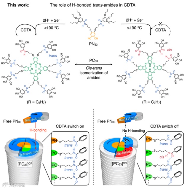 酰胺基团形成的氢键在结晶驱动的模板自催化(CDTA)中起到的关键作用,实现了可逆地调控酰胺顺反异构化来抑制或激活分子复制现象
