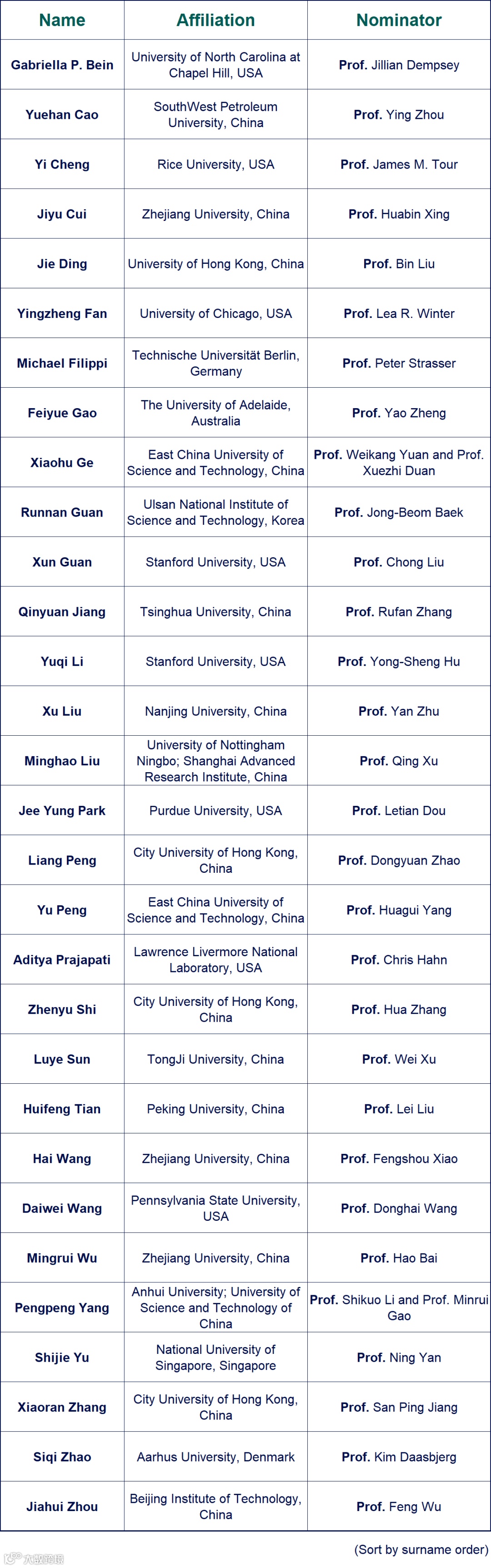碳未来青年研究者奖荣誉奖获奖者(30名)
