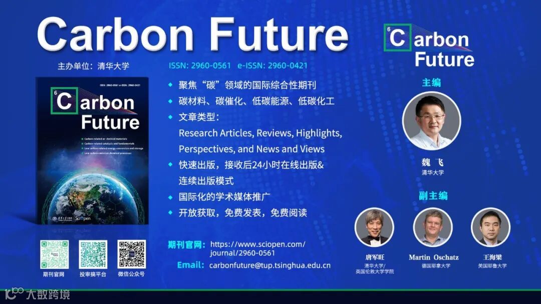 Carbon Future (《碳未来》)是由清华大学主办的国际英文综合性期刊,聚焦碳领域基础和应用研究,包括碳材料、催化、低碳能源、低碳化工等,致力于发表碳领域前沿进展,打造多学科融合的国际学术交流平台。该刊由清华大学魏飞教授担任主编,在清华大学出版社SciOpen平台出版,全文开放获取。