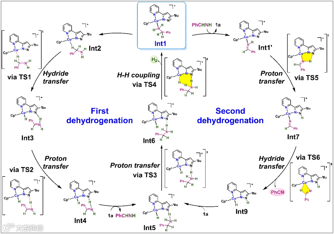 以“内球式”机理完成亚胺C−H的氢负向Co中心的转移,生成Co−H中间体